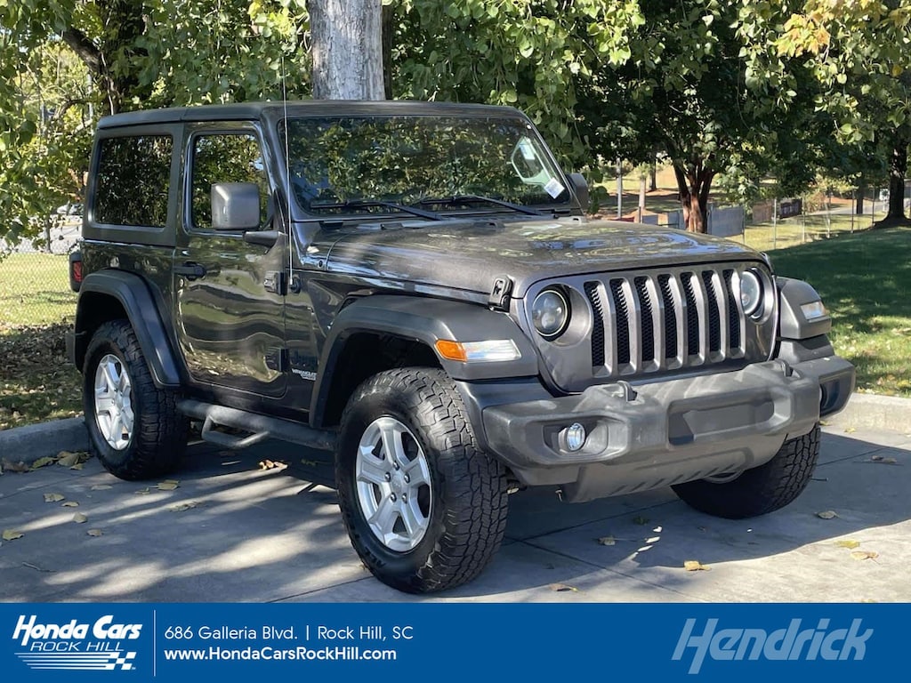 QUICK ORDER PACKAGE 22S SPORT S Engine: 2.0L I4 DOHC DI Turbo w/ESS, Transmission: 8-Speed Automatic (850RE), Speed Sensitive Power Locks, Automatic Headlamps, Leather Wrapped Steering Wheel, Front 1-Touch Down Power Windows, Power Heated Mirrors, R1234YF A/C Refrigerant, Security Alarm, Remote Keyless Entry, Sun Visors w/Illuminated Vanity Mirrors, TRANSMISSION: 8-SPEED AUTOMATIC (850RE) TIP Start, Dana M200 Rear Axle, Hill Descent Control, BLACK 3-PIECE HARD TOP Freedom Panel Storage Bag, Rear Window Defroster, Rear Window Wiper/Washer, No Soft Top, TECHNOLOGY GROUP Google Android Auto®, Cluster 7.0 TFT Color Display, SiriusXM Satellite Radio, USB Host Flip, Integrated Center Stack Radio, 7.0 Touchscreen Display, Air Conditioning w/Auto Temp Control, Radio: Uconnect 4 w/7 Display, Apple CarPlay®, Air Filtering, GPS Antenna Input, ENGINE: 2.0L I4 DOHC DI TURBO W/ESS. Jeep Sport S with Granite Crystal Metallic Clearcoat exterior and Black interior features a 4 Cylinder Engine with 270 HP at 5250 RPM*.