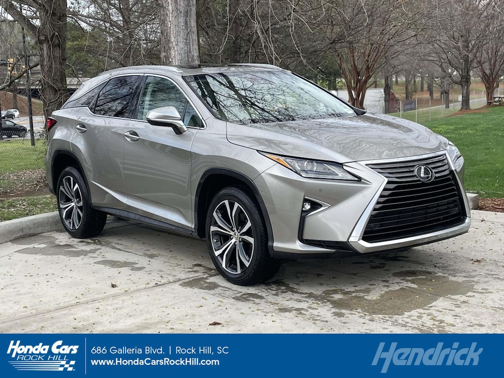 12.3 NAVIGATION SYSTEM advanced voice command casual-language voice recognition system, Bluetooth® hands free phone and automatic phonebook download capabilities, remote touch navigation controller, HD Radio w/iTunes tagging, SiriusXM NavTraffic, NavWeather, Sports, Stocks and Fuel Prices, Lexus Insider and Electro Multi Vision (EMV) display, Lexus Enform Destinations, Destination Assist, Lexus Enform App Suite, destination search, Yelp, iHeartRadio, Facebook Places, Movietickets.com, OpenTable, Pandora, Slacker, stocks, fuel prices and sports, Single-Disc DVD Changer, WHEELS: 20 X 8 SPLIT 5-SPOKE DARK SILVER machined finish, Tires: P235/55R20 M+S, POWER TILT & SLIDE MOONROOF, BLIND SPOT MONITOR W/REAR CROSS TRAFFIC ALERT intuitive parking assist, intelligence clearance and back sonar, and lane change assist, PREMIUM PACKAGE Rear Armrest Storage Compartment, Aluminum Roof Rails, Driver Seat/Steering/Mirror Memory - 3 Settings, drivers seat Easy Exit (auto away/return), HEATED & VENTILATED FRONT SEATS, HEATED MATTE BAMBOO STEERING WHEEL, MATTE BAMBOO INTERIOR TRIM, ACCESSORY PACKAGE Key Gloves, Alloy Wheel Locks, Carpet Cargo Mat, Cargo Net, TOUCH-FREE POWER REAR DOOR. Lexus RX 350 with Atomic Silver exterior and Parchment interior features a V6 Cylinder Engine with 295 HP at 6300 RPM*. Non-Smoker vehicle, Easy Financing Available (oac), Many affordable pre-owned cars available. Visit our website at www.hondacarsrockhill.com to view our huge affordable inventory.